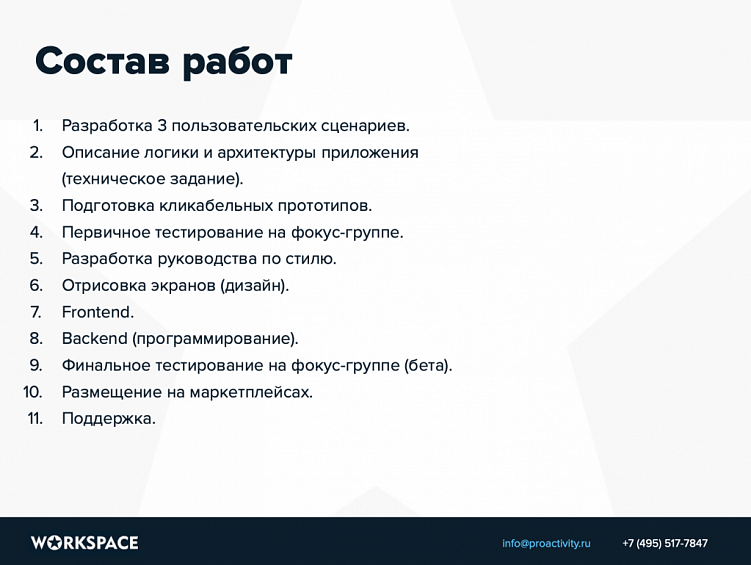 Как раз то, что помогает обосновать ценность работ для заказчика. Этот пункт нужно описать конкретно и подробно. Не просто «разработать приложение», а приблизительно так:
