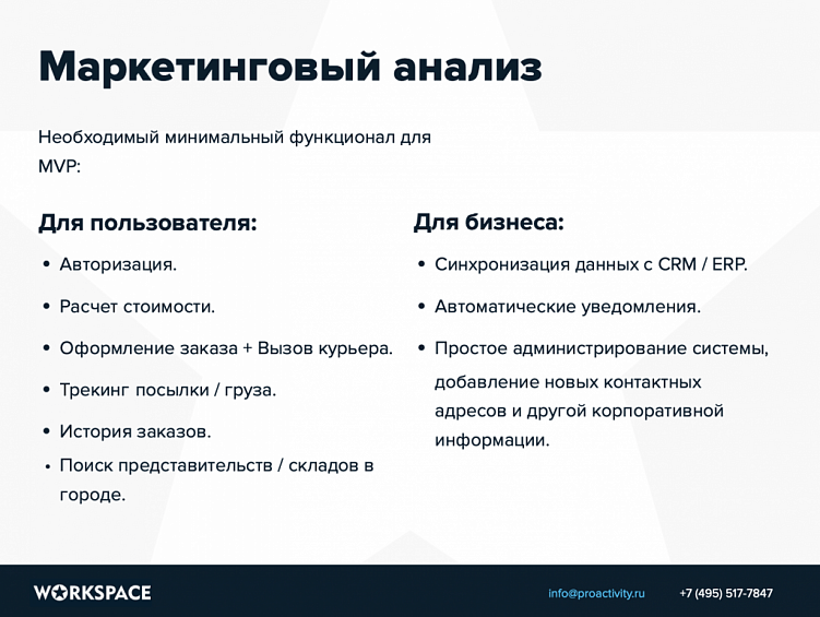 Данные о функционале на основе маркетингового анализа