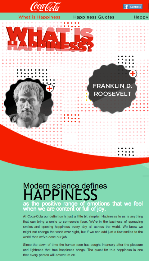 Множество крупных брендов уже сделали это. Так, слоганом Coca-Cola стала фраза «Открой счастье» (Open happiness). «Наслаждайся Pepsi» трансформировалось в «Живи здесь и сейчас».