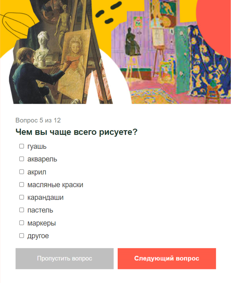 Ниже – несколько скринов с большим опросом, который мы делали на проекте.
