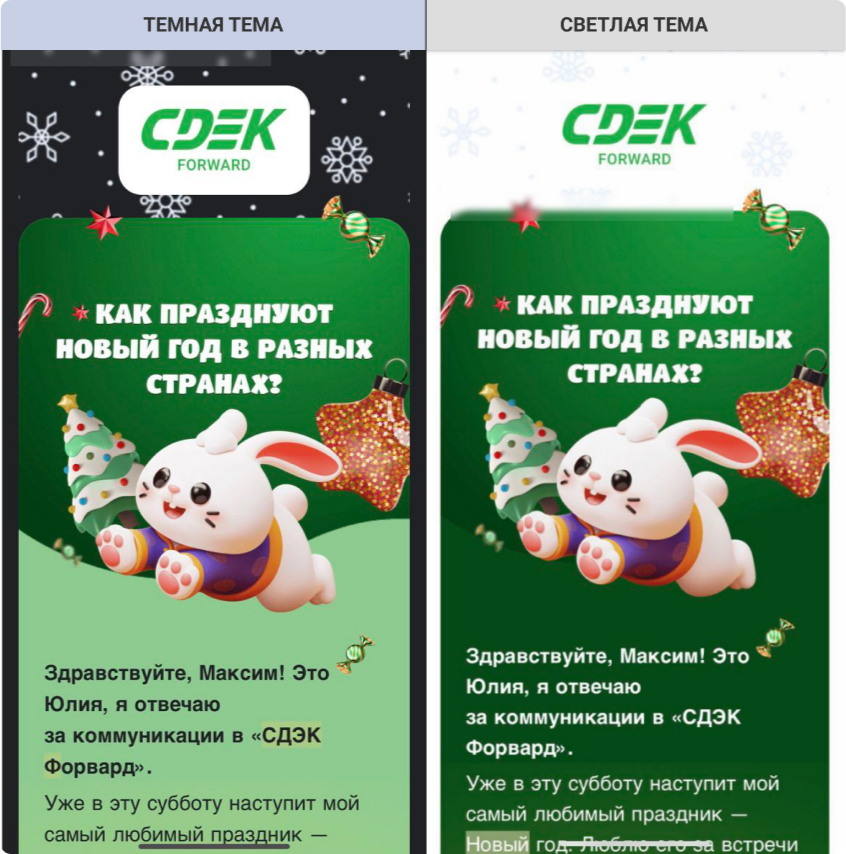 В 2022 году письма были малоадаптивны для мобильных и для темной темы. В 2023 году это должно решительно измениться! Как минимум потому, что требование «на адаптивность» выставляют сами почтовики – например, Gmail изменяет цвета писем, если у пользователя включена темная тема на телефоне.