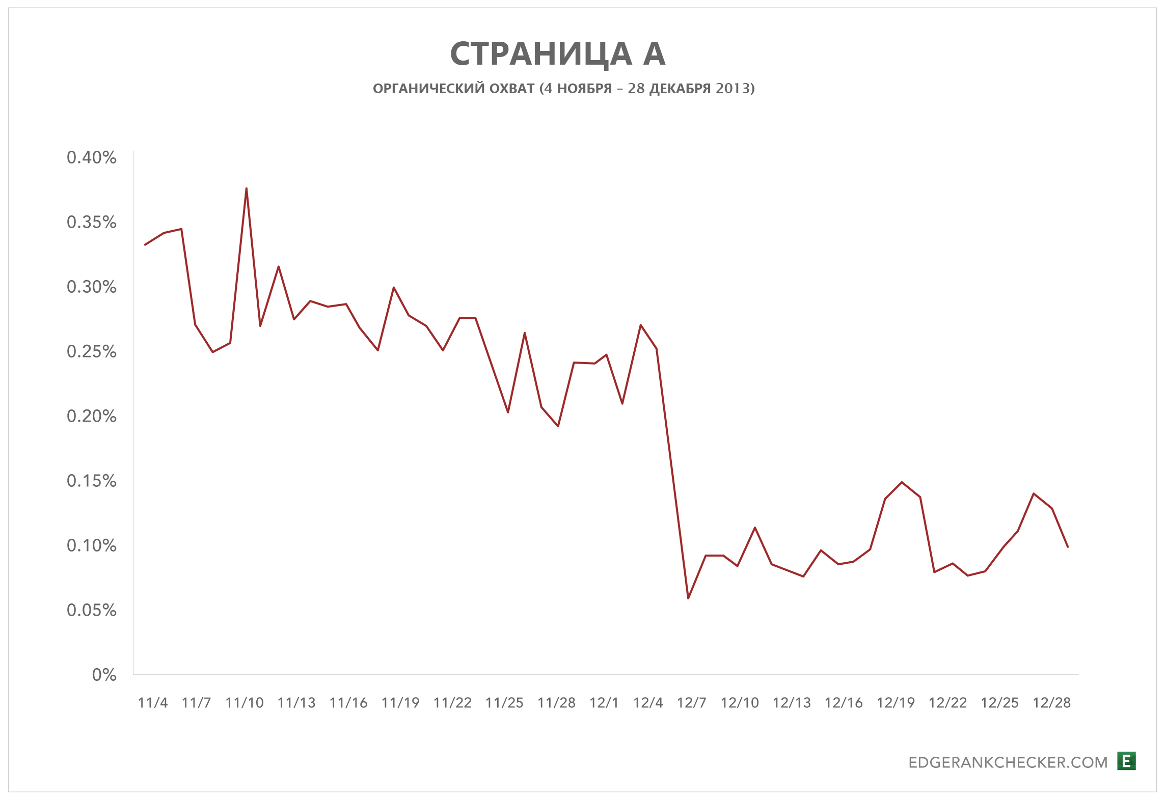 На странице A наблюдалось значительное падение охвата.