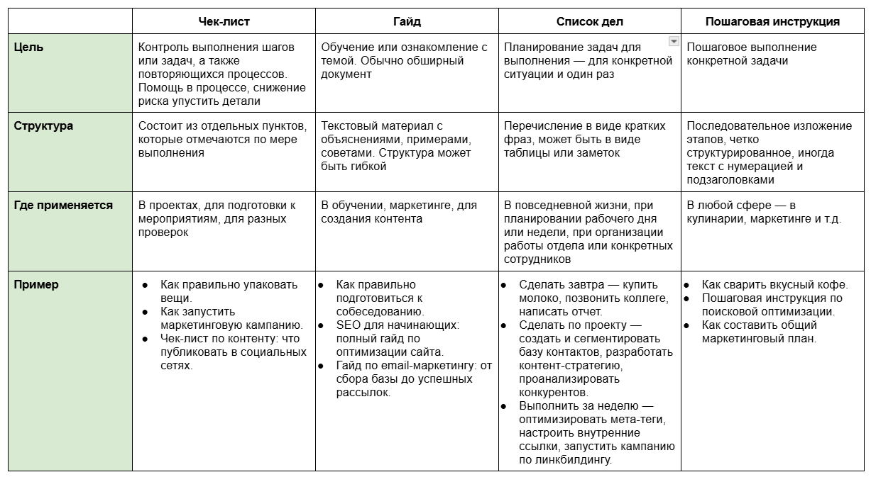 В чем отличие от гайда, списка дел и пошаговой инструкции
