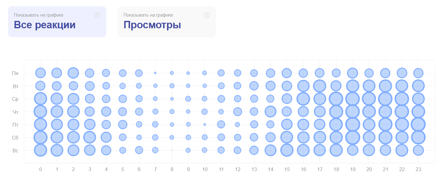 Пример тонкой аналитики в JagaJam: на скриншоте – активность подписчиков сообщества с учетом времени суток