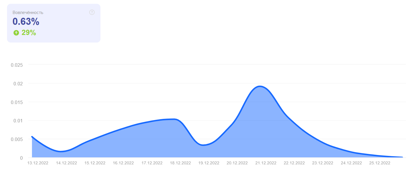 На скриншоте – динамика вовлеченности. На графике видны пиковые моменты: подумайте, что происходило в эти даты, и с чем могут быть связаны изменения