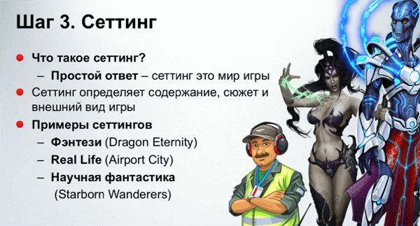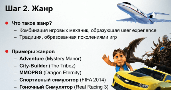 На данном этапе команда принимает решение, какой мир у будущей игры. Для того, чтобы добиться максимального охвата и прибыли, необходимо знать, какие миры актуальны и популярны. Спикер приводит следующее процентное соотношение: