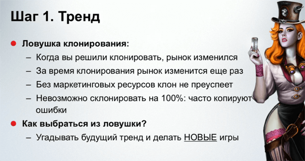 Главное не клонировать игру, а угадать тренд и создать собственное оригинальное предложение.