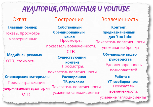 В зависимости от размера вашей компании, YouTube-стратегия может отличаться. Предположим, что вы компаний среднего размера. В этом случае, на стадии «Охват» YouTube будет использоваться как обычная рекламная платформа.