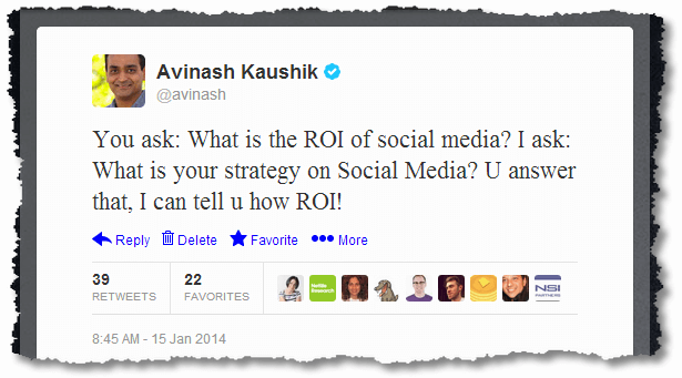 «Вы спрашиваете: каков ROI социальных медиа? Я спрашиваю: какова ваша стратегия в социальных медиа? Вы на это отвечаете, и я скажу вам, какой ROI!»