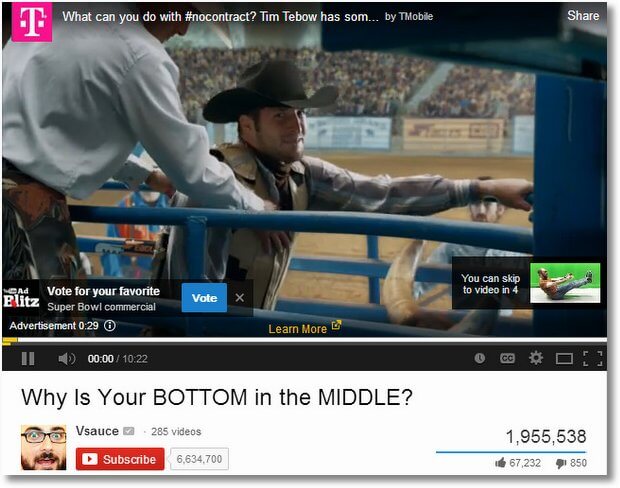 #3. Еще одно пересечение YouTube с реальным миром – это спонсорство. Ваша компания наверняка спонсирует разные мероприятия, спортивные команды и т.д. На YouTube можно делать все то же самое, но только для в десятки раз более целевой аудитории. На концерте, проходящем на стадионе, вы можете охватить рекламой пару десятков тысяч человек, а с помощью видеосервиса – сотни, если не миллионы. Здесь есть сотни каналов, спонсорами которых вы можете стать. Почему ваша компания еще не спонсирует Vsauce или Veritasium? На каждый из этих каналов подписана целая куча людей, которые напрямую относятся к вашей целевой аудитории.