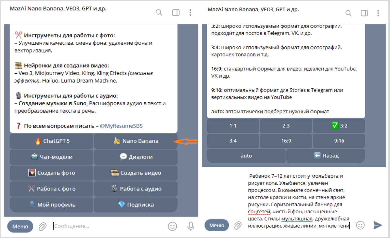 Где работать с Nano Banana в Telegram