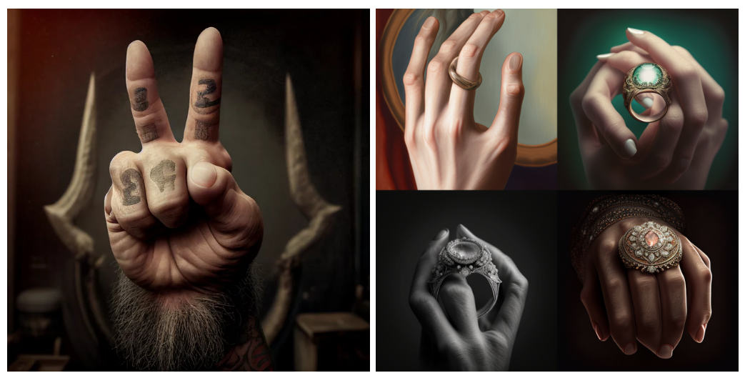 Так, случилось, например, с нейросетью Midjourney, которой упорно не давалась прорисовка человеческих пальцев. Пользователи жаловались на то, что их было чуть больше, чем нужно, а странная анатомия рук частенько вызывала эффект «зловещей долины».