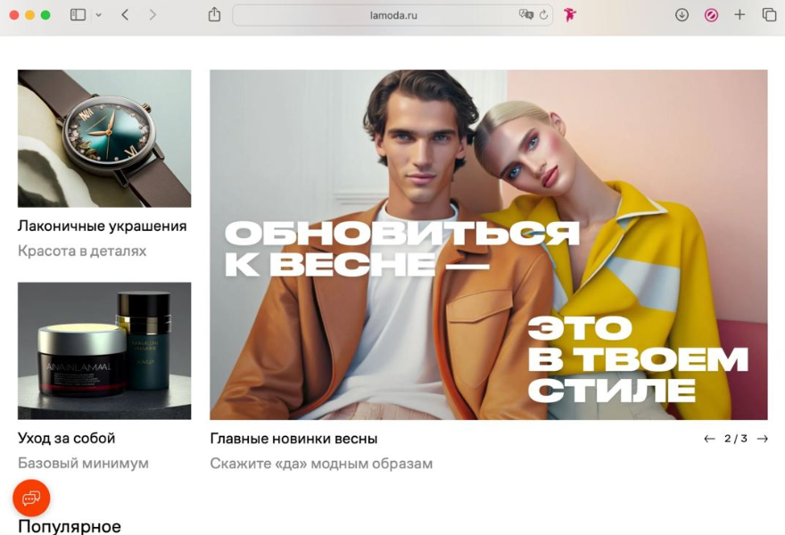Нейросеть активно используют в коммерческом дизайне. Lamoda, к примеру, разместила на главной странице сайта не реальных моделей, а изображение от Midjourney.
