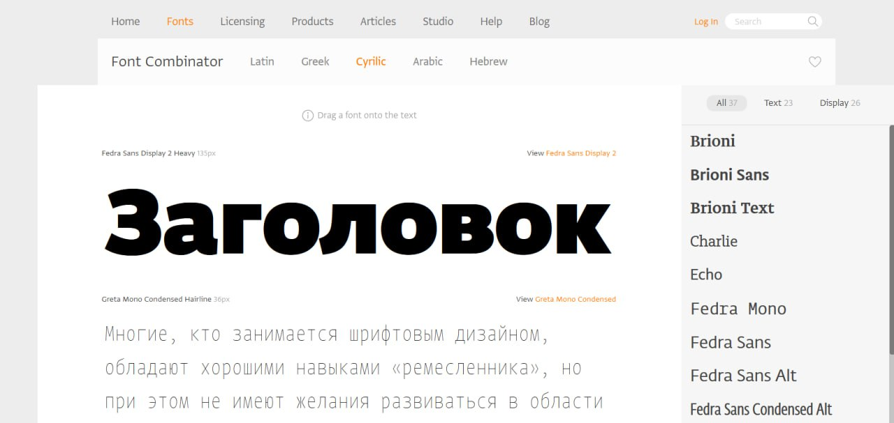 ИИ подбирает шрифты на модели машинного обучения, создавая пару по заданному параметру. Существует и режим генератора, и подбор сочетаний вручную.