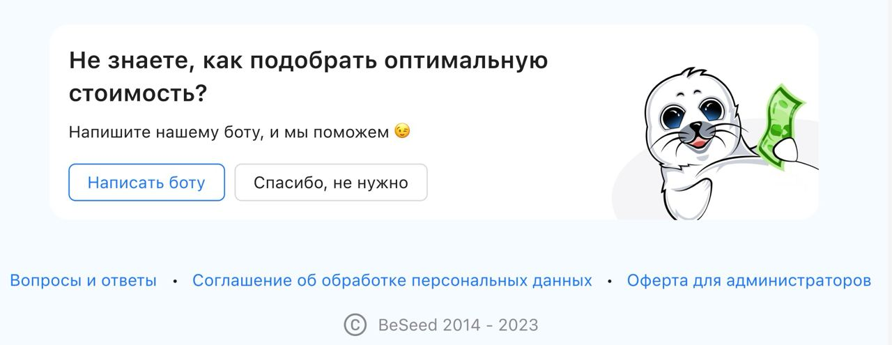 Выбор нерпы как маскота – однозначно непопулярное решение, так как это не условный котик (это животное очень распространено в роли маскота в разных диджитал-компаниях), а эндемик России, который обитает только на родине самой компании. И это очень откликается бизнесу – так как BeSeed фокусируется именно на решениях, которые представлены и доступны в России на данный момент (рекламные посевы в Telegram, а также социальных сетях VK и OK).
