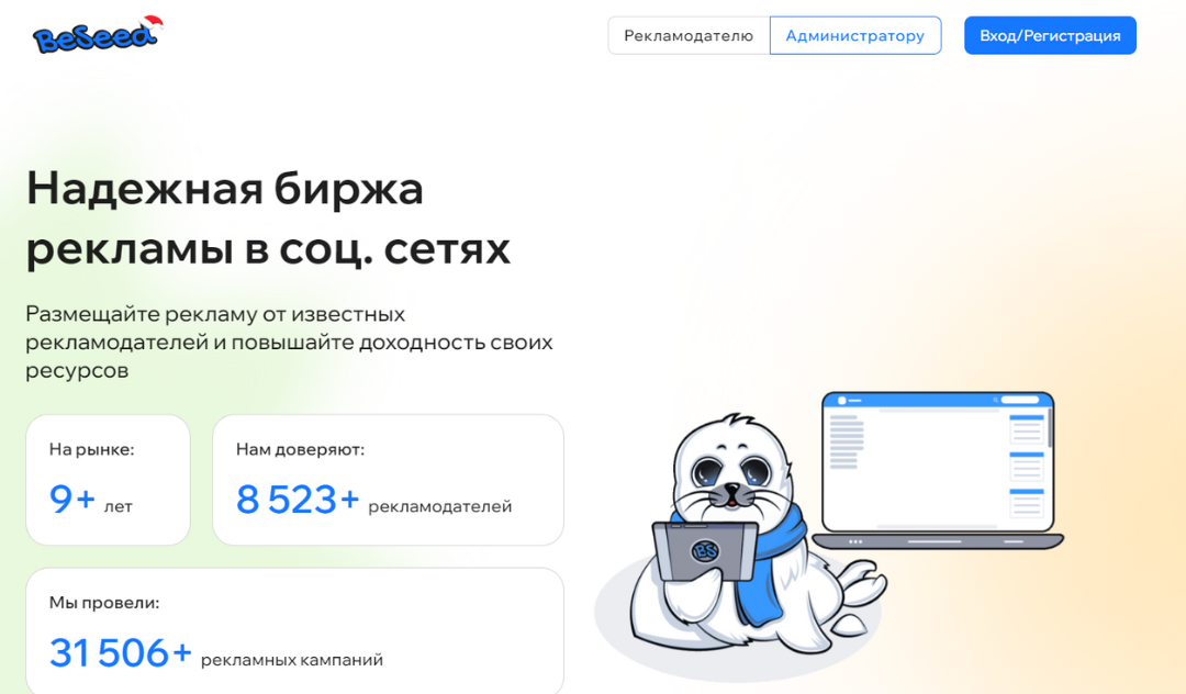 Нерпа хорошо устроилась на сайте: для рекламодателей она запускает «космические» рекламные кампании (скриншот слева), а для администраторов – следит за рекламным кабинетом и считает заработанные на нативной рекламе средства.