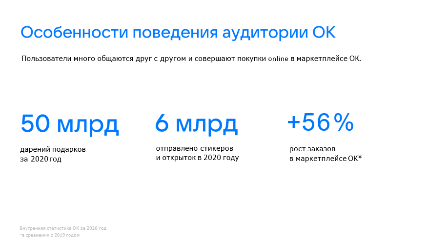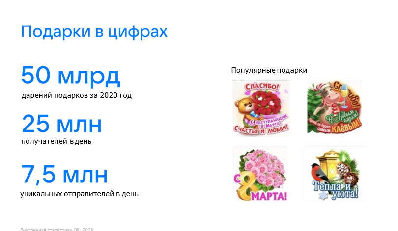 Самый главный аргумент про «прошлый век» – это открытки и подарки в Одноклассниках, и что аудитория только ими и обменивается.