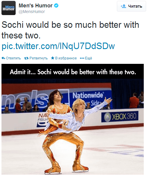 IV. На четвертом месте мнение от @MensHumor о том, что Олимпиада была бы лучше с этими двумя фигуристами: