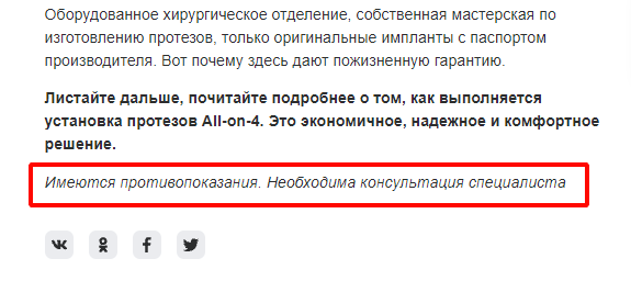 Кроме того, каждый текст о медицинских препаратах или услугах должен завершаться предупреждением: