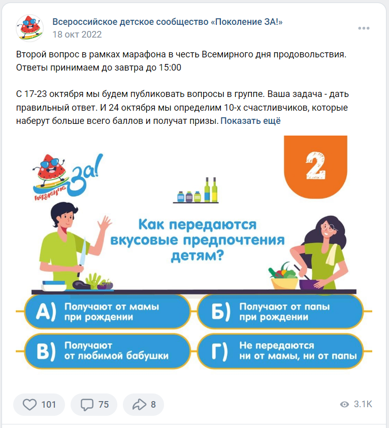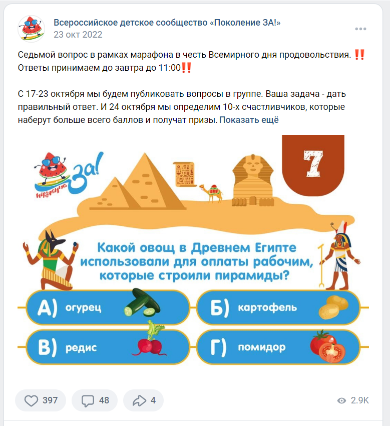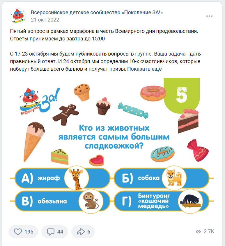 Семь дней в группе публиковались вопросы в формате викторины.