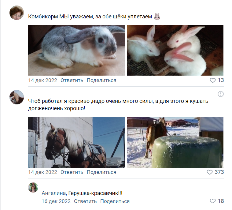 В сообществе КомбиКормового завода провели фотоконкурс: предложили подписчикам опубликовать фото своих животных, выращенных на корме компании, в комментариях под постом.