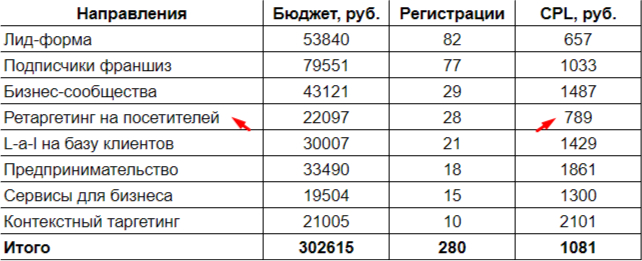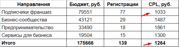 По итогу – на нашем проекте все кампании приносят заявки по приемлемой цене, но если смотреть только на кампании с сообществами по франшизам – стоимость лида меньше на 18%.