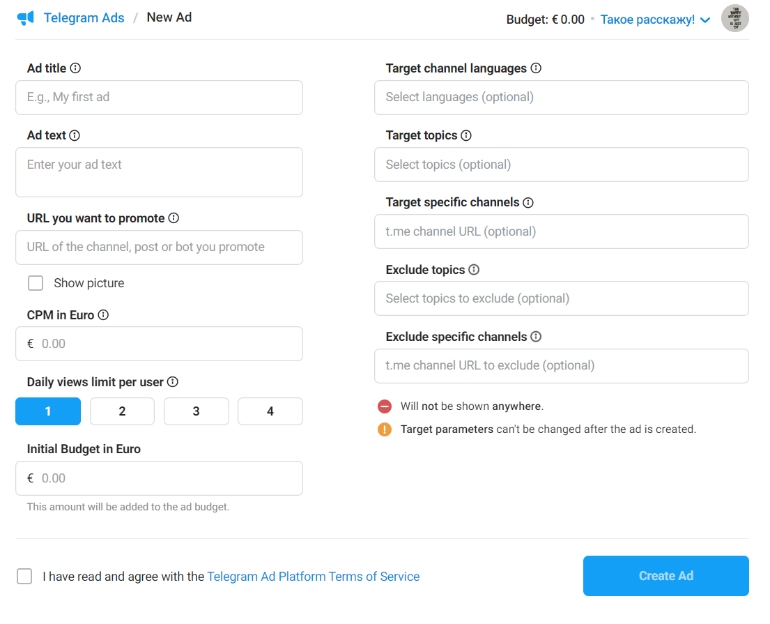 Объявления показываются в каналах с аудиторией более чем 1 000 подписчиков, а продвигать при этом можно каналы, боты, конкретные посты или сторонние сайты.