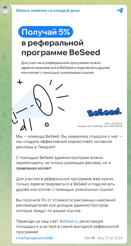 Среди наиболее популярных сидинговы платформ выделяют: маркетплейс нативной рекламы BeSeed, сервисы Telega.In и SocialJet.