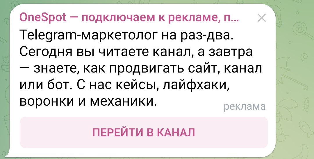 Подводя черту под нашим большим монологом о рекламе в Telegram, хотим раз и навсегда закрепить: реклама всегда работает динамично. Всегда нужно пробовать разные форматы, изучать аудиторию и ее интересы.