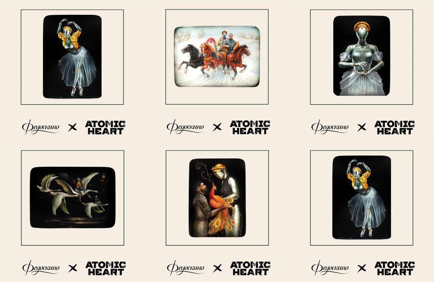 Шкатулки «Федоскино» с изображениями персонажей из игры «Atomic Heart»