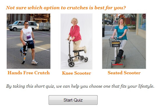 Чтобы максимально облегчить жизнь пользователям, бренд предлагает пройти небольшой тест и ответить на несколько вопросов. Вместо чтения длинных текстов, какие костыли подходят для каких случаев, просто ответьте на несколько вопросов и получите ответ.