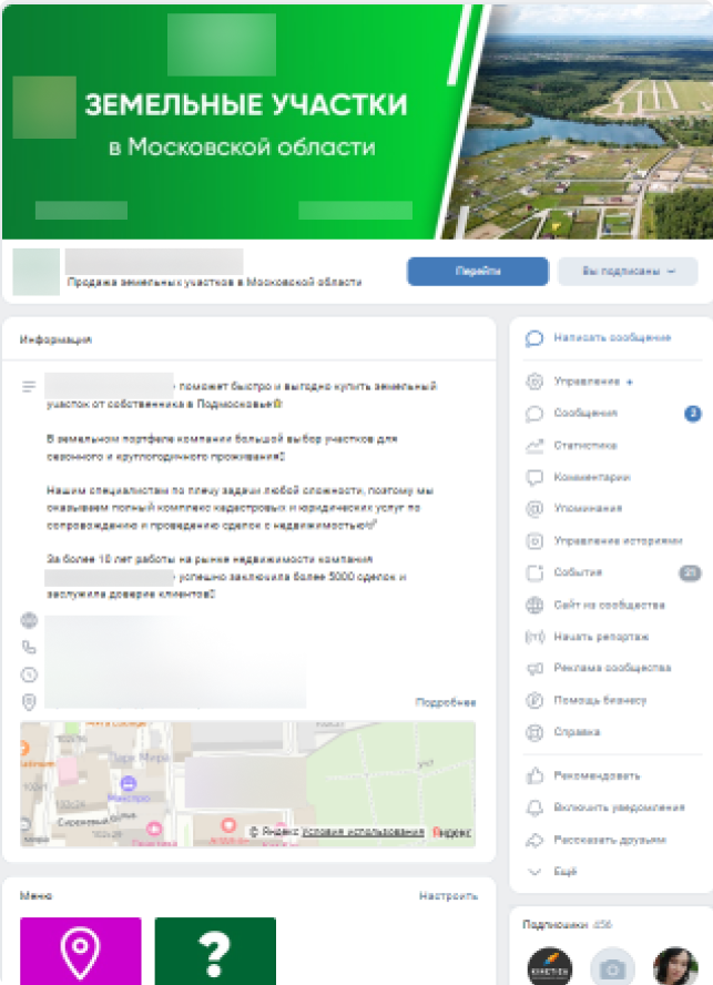 Пример оформления сообщества ВКонтакте для группы по продаже земельных участков