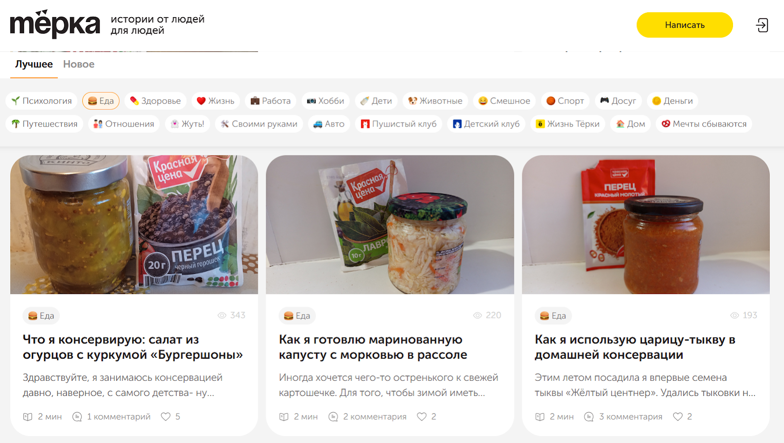 На одной нашей пользовательской платформе люди делятся опытом на самые разные темы – от воспитания детей и семейного бюджета до выбора выставок и планирования отдыха. Они сами выбирают, о чем писать, оформляют тексты, добавляют фото, и после модерации материал публикуется.