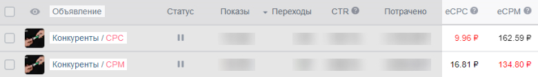 При выборе цели «Переходы по рекламе» мы получаем более низкий CPC, а при выборе цели «Показы рекламного объявления» – более низкий CPM