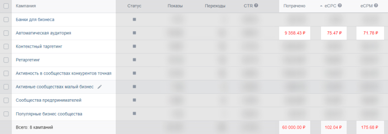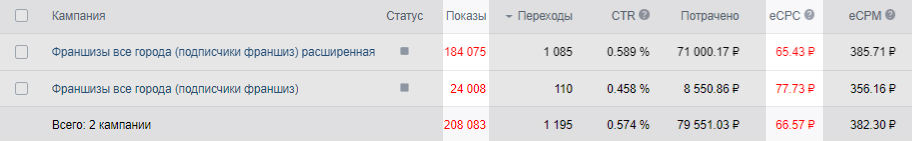 На эффективность кампании будут влиять и другие настройки: таргетинг, ограничение дневного бюджета, формат объявления, его качество, CTR.