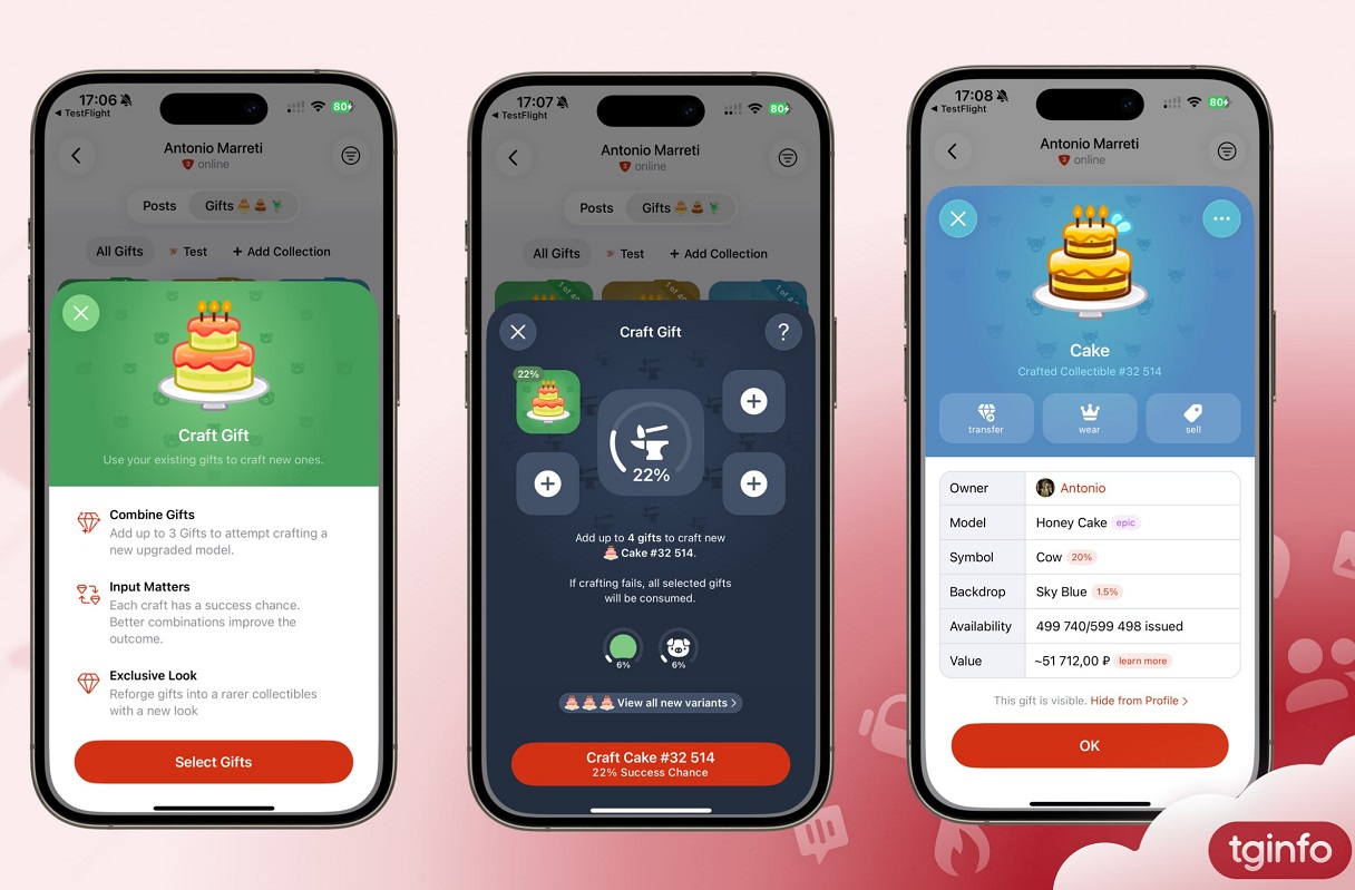 Telegram позволит создавать новые подарки, объединяя уже имеющиеся