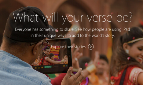 К выходу новой рекламы была создана специальная страница, на которой содержится анонс серии видео-эссе на тему того, как iPad используется как средство для создания контента («Съемки в Болливуде», «Средство для удаленного обучения» и т.д.)