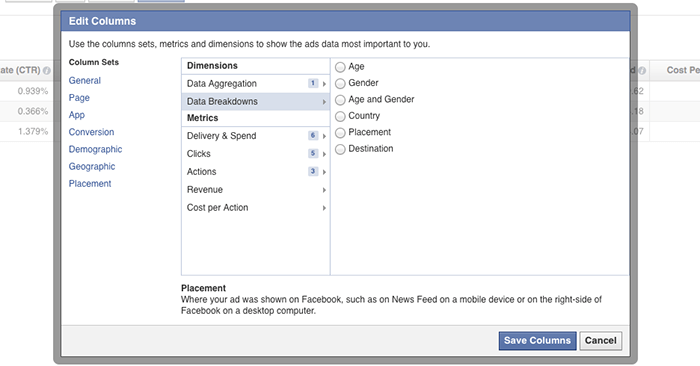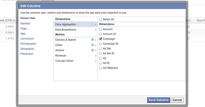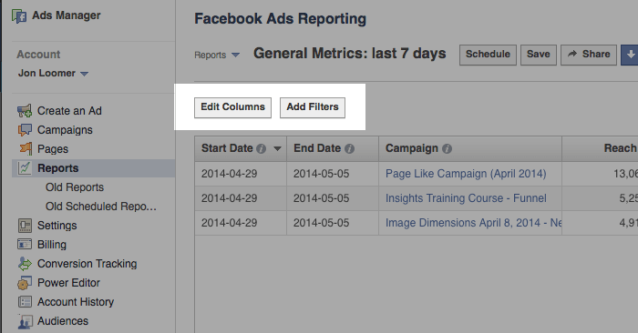 Вы можете вносить изменения в рекламные отчеты с помощью кнопки «Редактировать колонки».