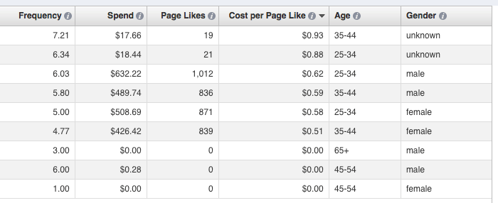 Колонка «Возраст и пол» позволяет одновременно оценить возраст и пол охваченных вами людей и оценить, для какого сегмента аудитории реклама оказывается наиболее дорогой.