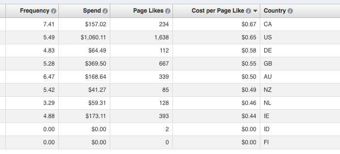 Если вы добавите столбец «Страна», то увидите список стран, пользователи которых видели ваше объявление.