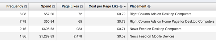 Колонка «Размещение» даёт вам возможность оценить эффективность рекламы в зависимости от того, где было показано объявление: