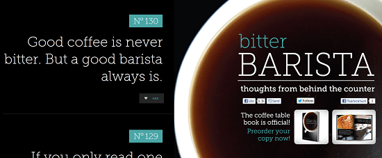 Свой блог выпускник философского факультета завел несколько недель назад, сделав его, учитывая содержание, анонимным. Bitter Barista тут же стал невероятно популярным – ежедневным визиты в блог исчислялись тысячами.