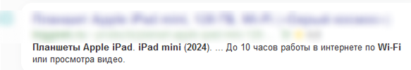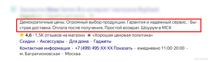 Зачастую фиды не адаптированы под контекстную рекламу. И вместо краткого и лаконичного описания в description, мы можем увидеть довольно объемный текст, который просто не поместится в объявление и не сможет передать главные преимущества продукта. Пример такого объявления: