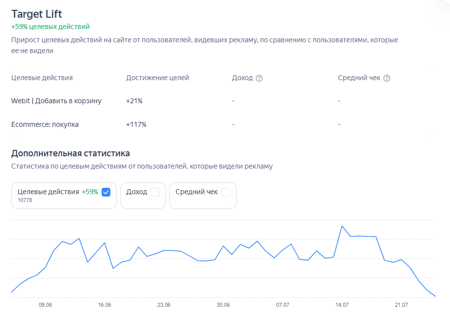 Target Lift – исследование, которое позволяет оценить, как росло число целевых действий на сайте после просмотра медийной рекламы.
