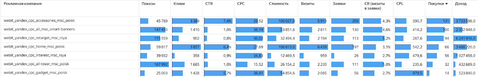 Наиболее эффективными оказались: Ретаргетинг в РСЯ, Смарт-баннеры и ЕПК – Поиск на основе ключевых фраз.