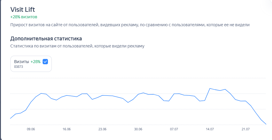 Visit Lift – аналитика, которая позволяет оценить, удалось ли медийной рекламе привести трафик на сайт.