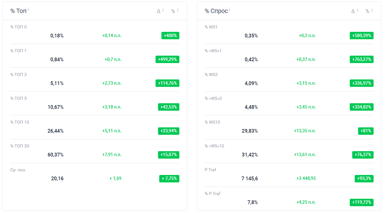 За счет роста видимости и трафика нам удалось нивелировать просадку трафика из-за снижения сезонного спроса, который наблюдается в тематике с января. Благодаря безбрендовому трафику мы наоборот получили прирост.