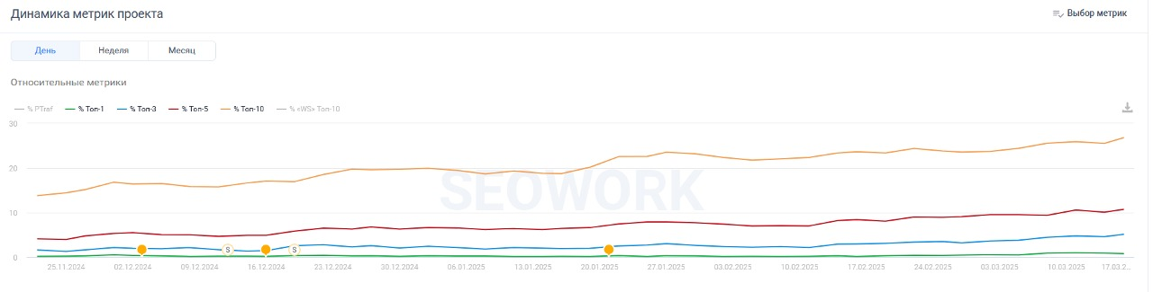 Приоритетом SEO-оптимизации стало увеличение общего трафика на сайт и повышение конверсии. Контекстная реклама активно вела на ключевые категории, но для долгосрочного эффекта и снижения стоимости привлечения пользователей важно было улучшить органические позиции сайта.