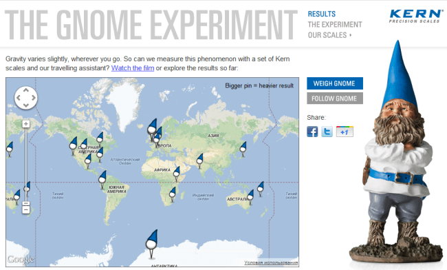 На , посвященном эксперименту, пользователи могли оставить запрос на «взвешивание гнома». Как только они получали чемоданчик, вес фигурки замеряли и отмечали данные на специальной карте.
