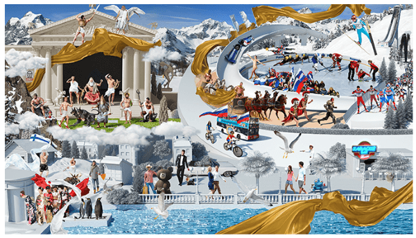 На сайте бесплатного онлайн-кинотеатра ivi.ru был запущен спецпроект: в рамки телевизора Panasonic Viera вставили “картину” — иллюстрацию большого разрешения (4K) на тему Олимпийских игр. На картине перемешались темы и эпохи: современный Сочи и древнегреческие игры, болельщики и олимпийские виды спорта. Рассматривая картину из мелких деталей, пользователь должен был найти «ошибки автора» и разгадать головоломки.